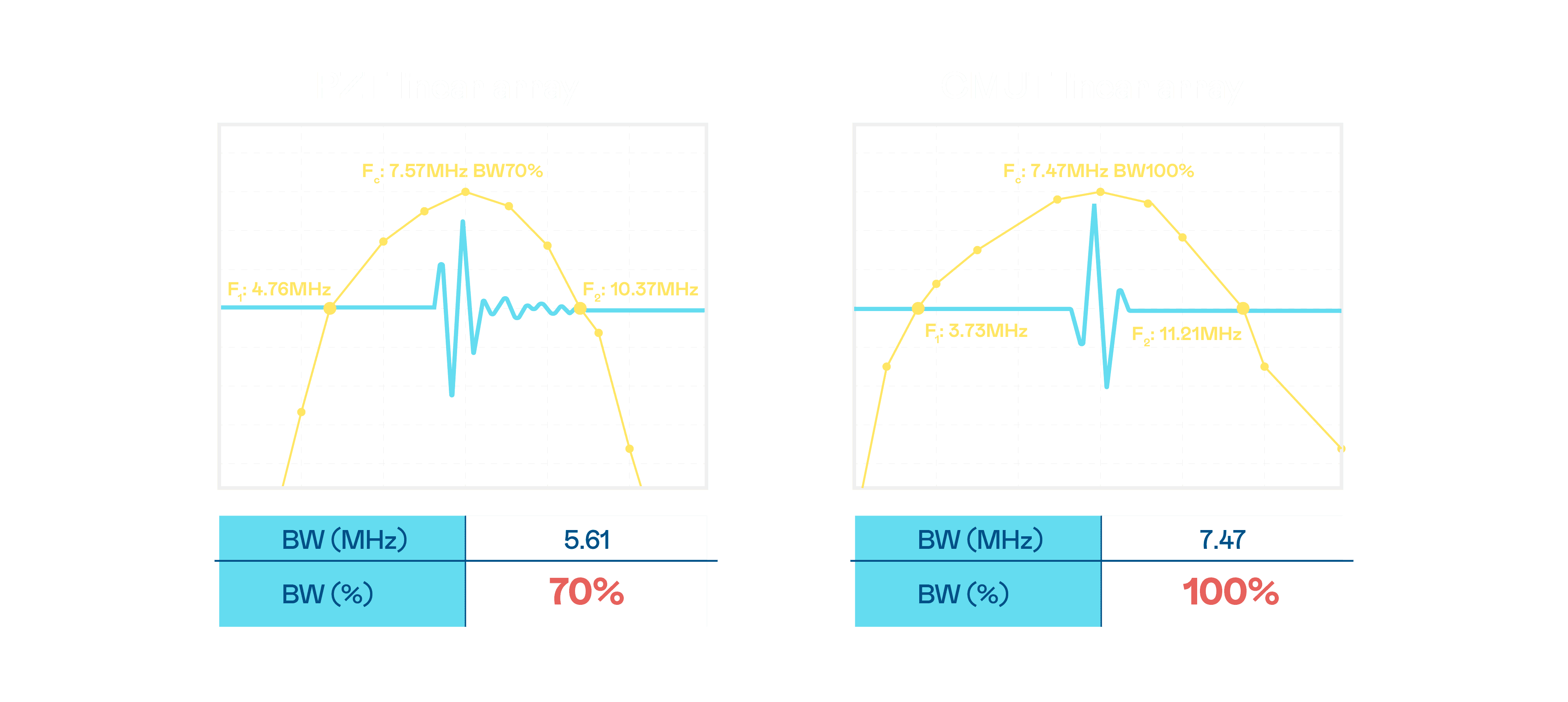 超音波影像的解析度高低,,,,首先取决于探头能发出的讯号频宽。。NG大舞台 CMUT 可提供高清晰的超音波讯号,,,,提供高频宽、、、高灵敏度、、影像纹理细节更高的超音波影像,,,,协助医护人员缩短影像判读时间及利用精准的医疗影像进行诊断。。。